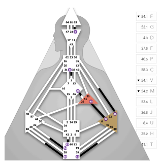今日的核心頻率由 54 號閘門第 1 爻主導。在 BG5 商業設計中,54 號閘門被稱為「驅動力」,它代表著一種渴望物質成功、地位提升的原始動能。