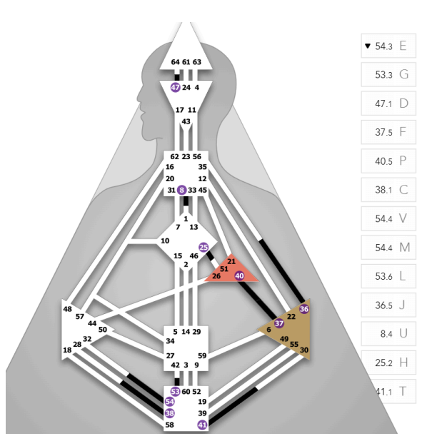 今日的核心頻率由 54 號閘門第 3 爻主導。在商業設計中,第 3 爻總是與「適應」和「試錯」有關。
