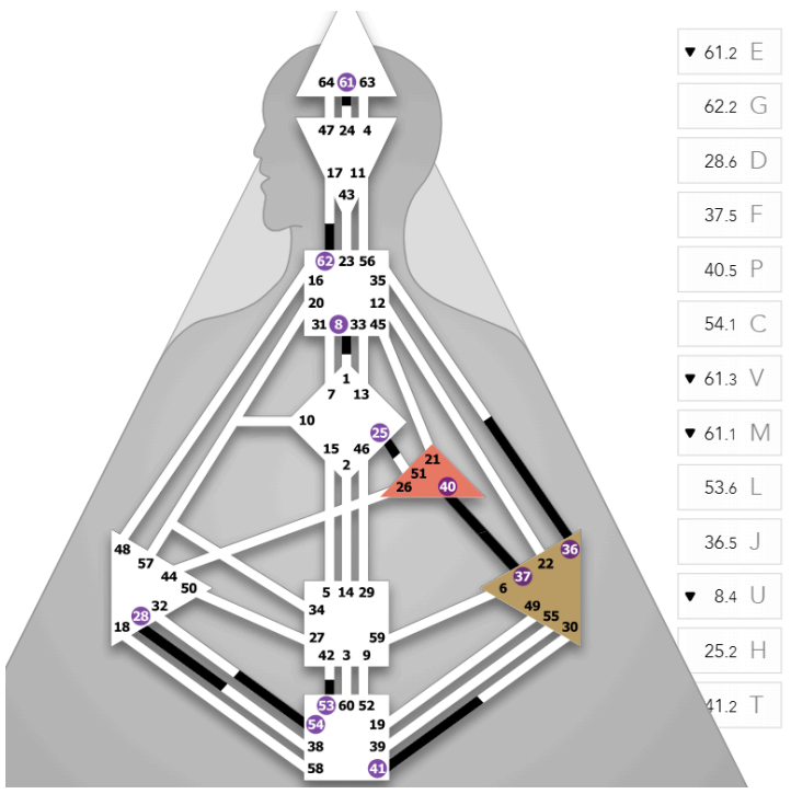 今天的核心能量位於頭頂中心的 61 號特質。這股能量帶來強大的心理壓力,迫使我們去探索未知的真理。 2號特性(二爻) 的特質是「自然光彩 (Natural Brilliance)」。這意味著今天的你,可能不需要刻意努力,就能自然流露出對事物的深刻洞見。你會發現自己很容易吸引他人的目光,因為你看得見別人看不見的盲點。
