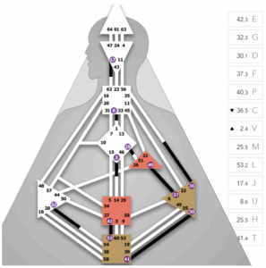 發展中的能力落在特質25,6號特性(天真,競爭力),被隱藏的特質是特質25,5號特性(天真,競爭力),真理與轉化落在特質41,4號特性(夢想家,想像力)。